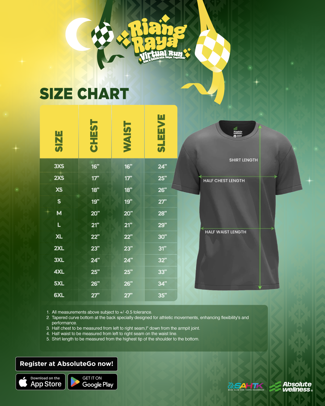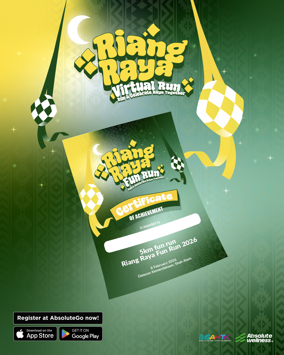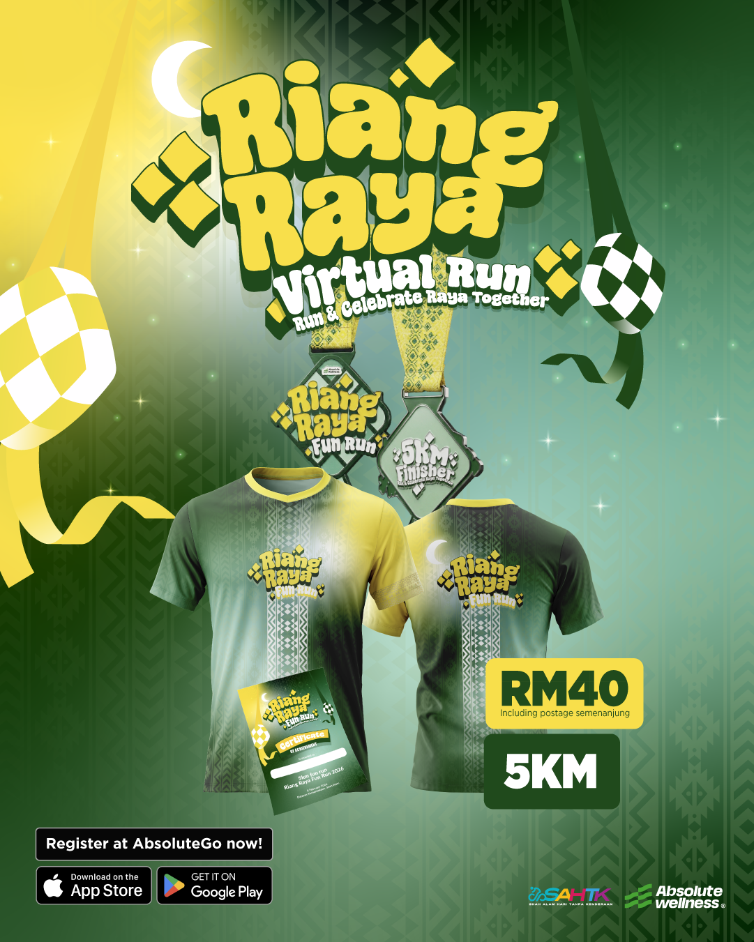 This is a 5KM Virtual Run event. Participants can submit their run results via a GPS tracker by syncing with Strava or through manual submission on the AbsoluteGo app.